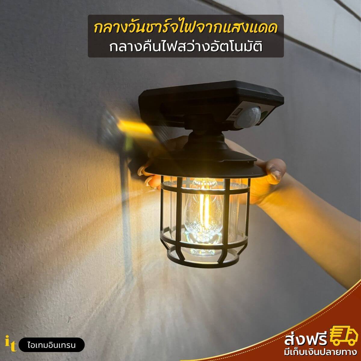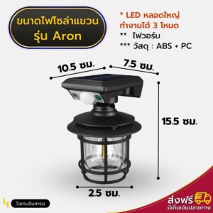 [🥇ล่าสุด] ไฟติดผนังโซล่าเซลล์รุ่น Aron ยิ่งเปิด ยิ่งคุ้ม ดีไซน์คลาสสิก แสงสีวอร์ม ทนแดด กันน้ำ ชาร์จแดด 100% ประหยัดค่าไฟยาวๆ