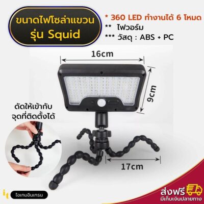 [🥇ล่าสุด] ไฟสปอตไลท์โซล่าเซลล์รุ่น Squid ติดตั้งง่ายที่สุด แสงไฟสีวอร์ม จัดเต็ม 360LED สุดคุ้ม ทนแดด กันน้ำ ชาร์จแดด 100% ประหยัดค่าไฟยาวๆ