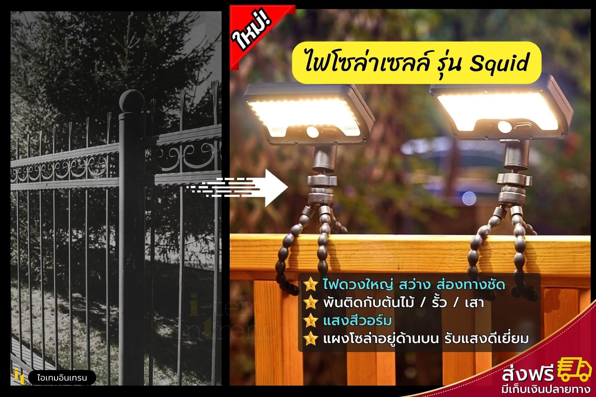 ![[🔥ล่าสุด] ไฟโซล่าติดรั้ว รุ่นมินิ ไร้สาย ติดง่ายทุกมุมบ้าน แสงวอร์ม (3LED) สวยมีมิติ แต่งสวน/บ้าน ทางเดิน รั้วบ้าน](https://www.itemintrend.com/wp-content/uploads/2024/08/13-300x300.jpg)