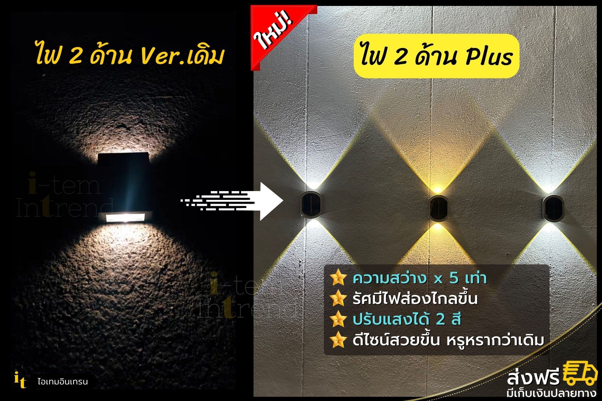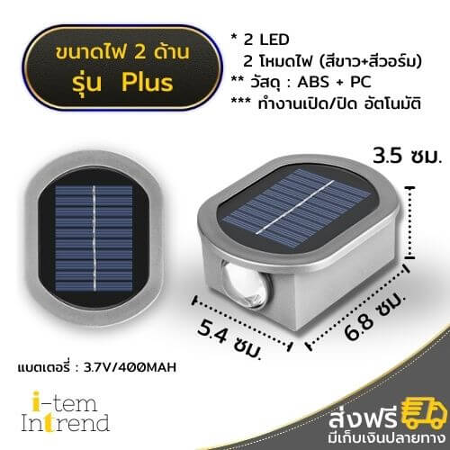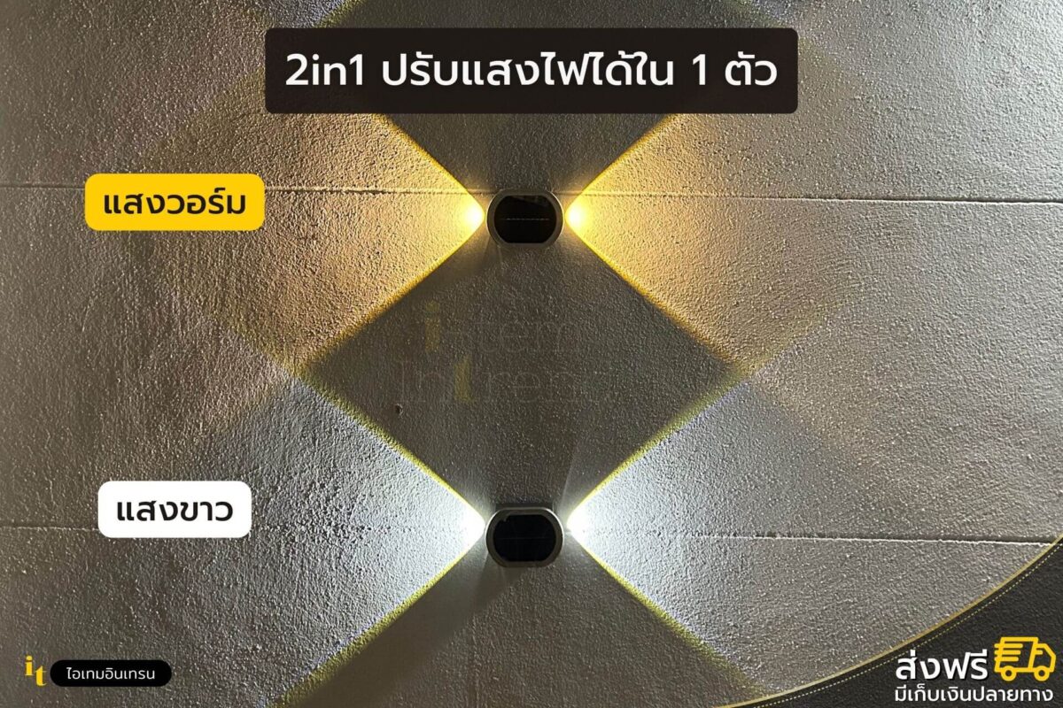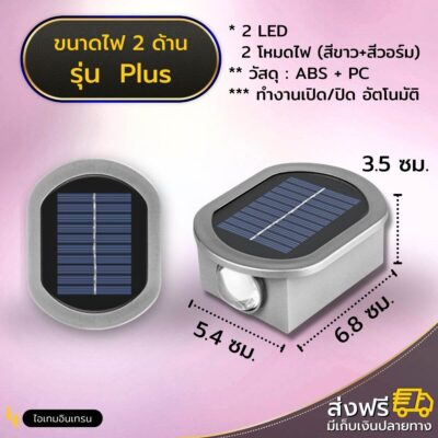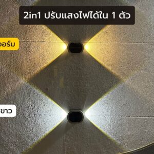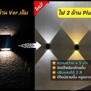 ไฟโซล่า 2 ด้าน Plus (2 in 1) ปรับแสงไฟได้ 2 สี สว่างx3 ติดตั้งง่าย ออกแบบผนังได้ตามใจ