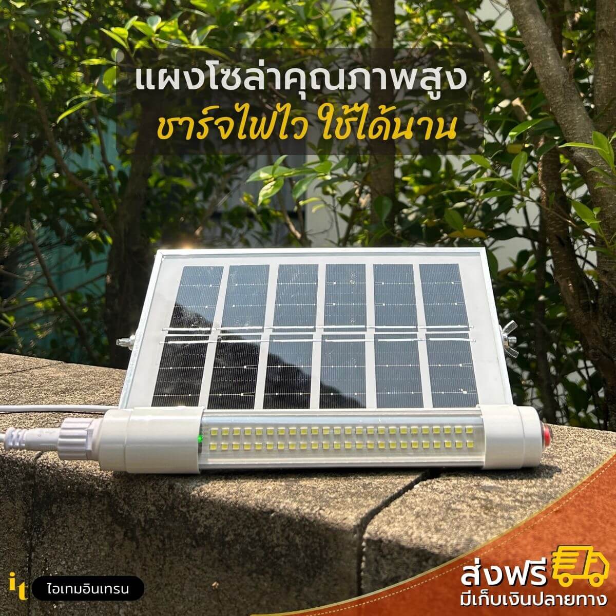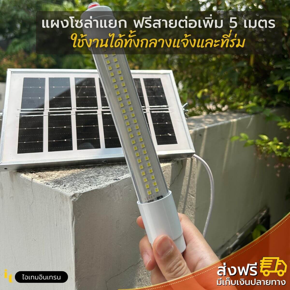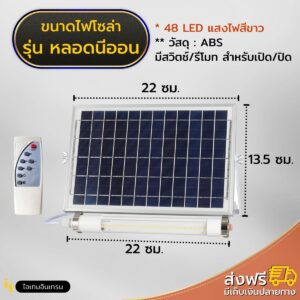 ไฟโซล่าเซลล์ นีออน แผงโซล่าแยก ใช้ได้ทั้งกลางแจ้งและที่ร่ม แถมฟรี!! สายต่อโซล่าเซลล์ยาว 5 เมตร