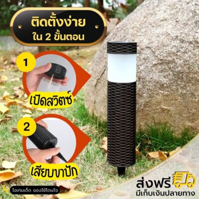 ไฟปักสนามโซล่าเซลล์ ลายหวาย แต่งสวน สุดปัง