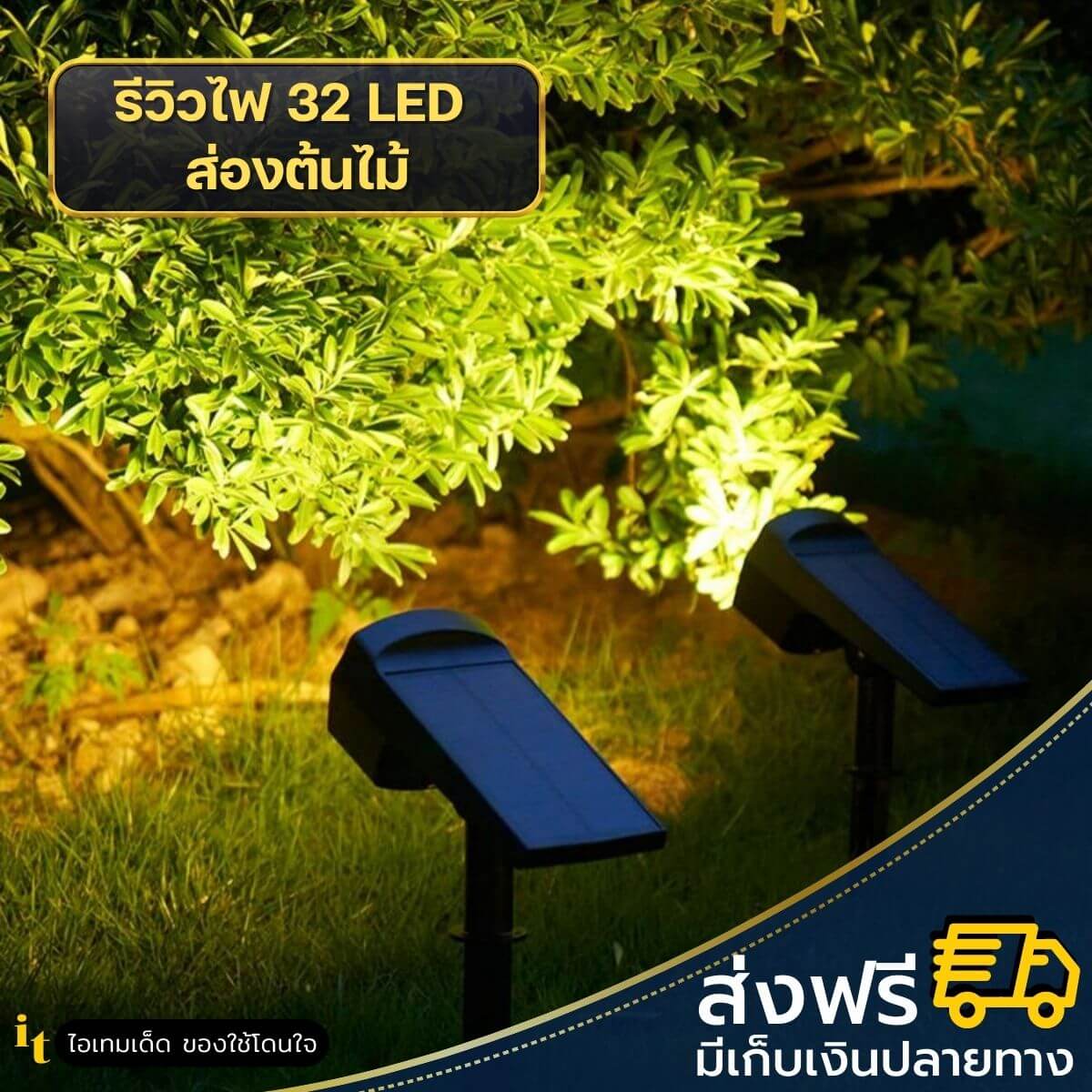 [🥇 ขายดี] ไฟสปอตไลท์ โซล่าเซลล์ 32LED ตกแต่งน้ำตก ต้นไม้